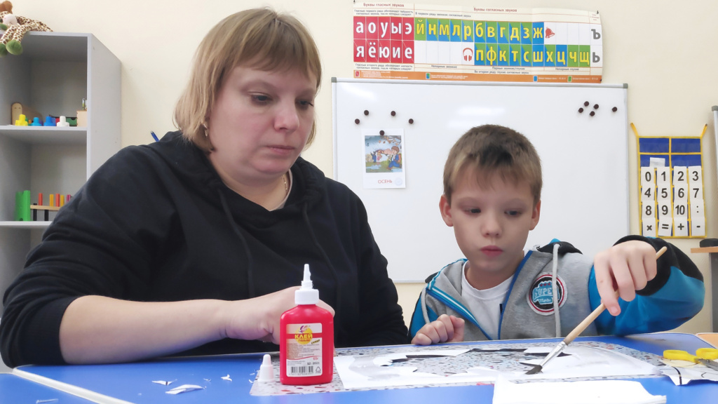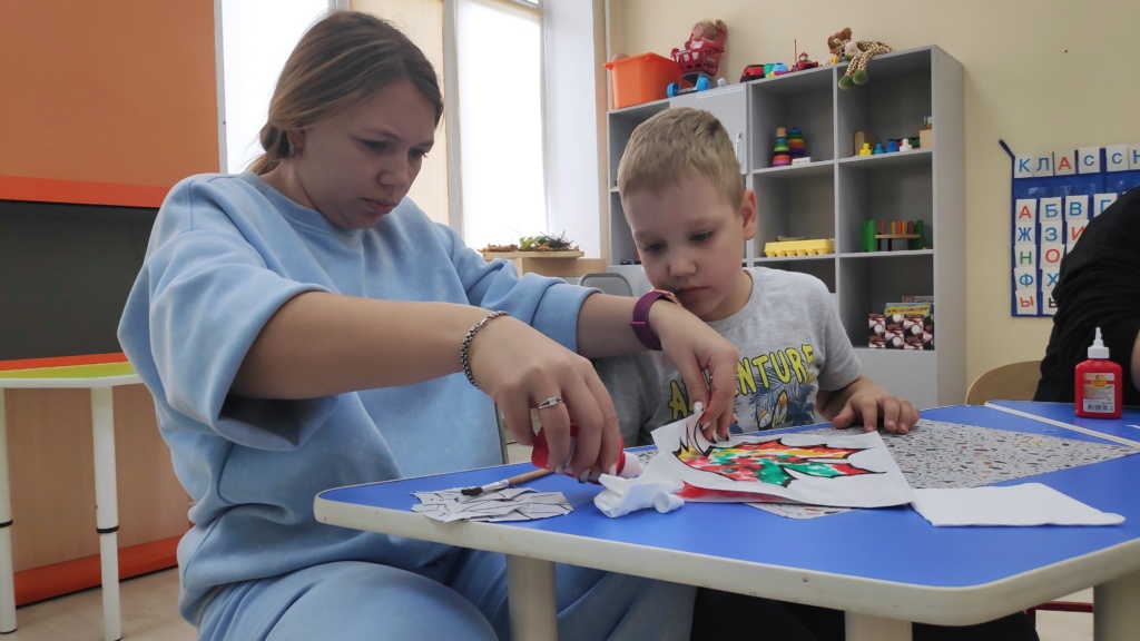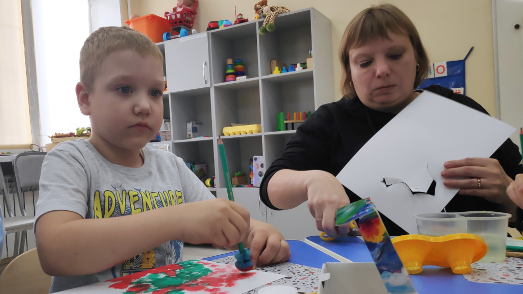 — Пока ребята осваивали технику штампа с педагогом, мамочки готовили паспарту.