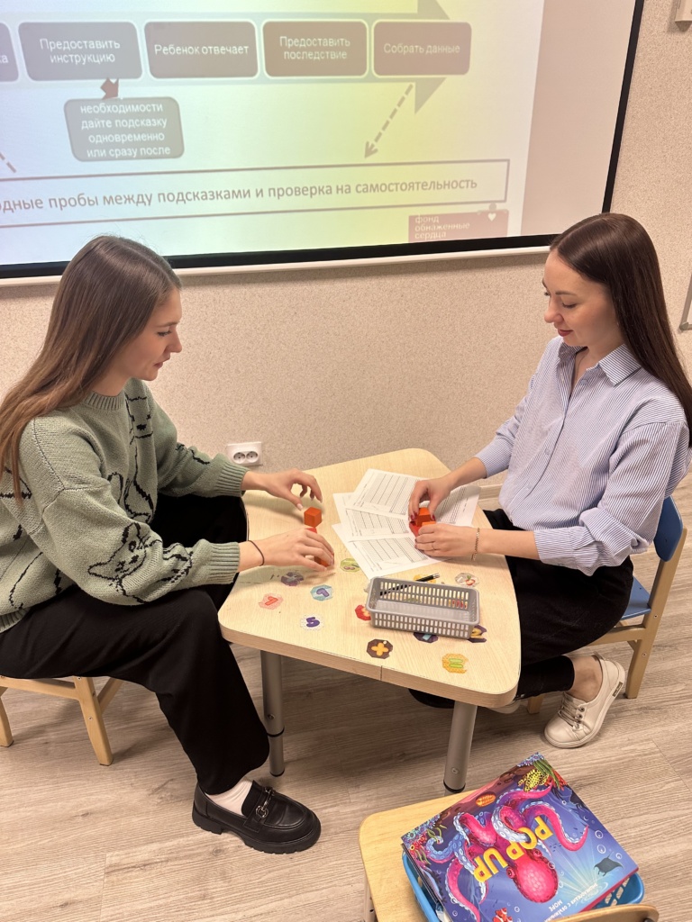 - Сбор данных (ABC, STAR) — специалисты учатся внимательно отслеживать, что предшествует поведению, что запускает сложности и что, наоборот, помогает. Это очень важно, потому что работа строится не «на ощущениях», а на реальных наблюдениях.