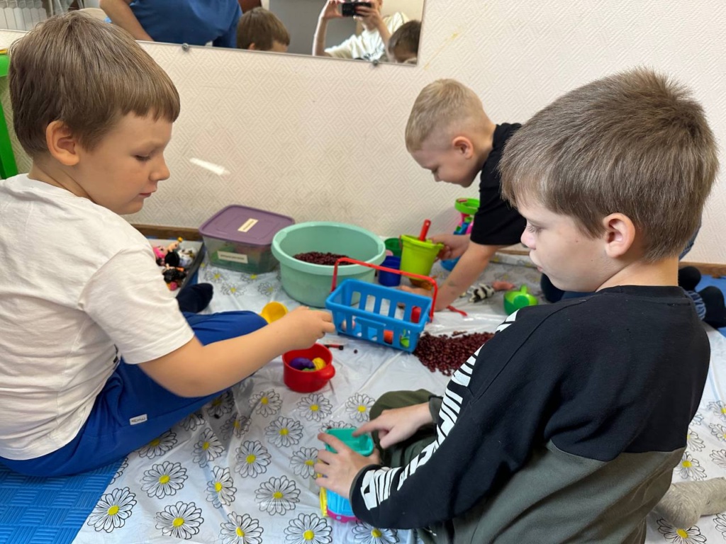 На крупяных занятиях наши ребята развиваются по всем направлениям, учатся взаимодействовать друг с другом — делиться, меняться, принимать выбор другого, выполнять задания вместе, фантазировать.